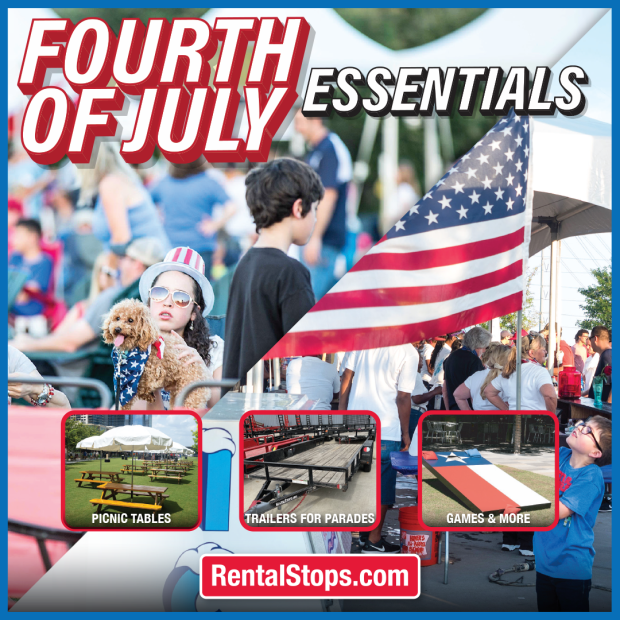 This Fourth of July get your essential celebration items such as trailers for parades, picnic tables / tables and chairs, games and more!